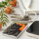 Keychain con un gato negro vintage de Halloween y calabazas! Esta pequeña pelota de piel se sienta adorablemente al lado de dos calabazas naranjas. ¡Un gran regalo para los amantes de las fiestas de Halloween y los gatos!
