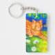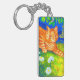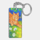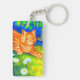 Cadena de claves con la pintura de animales de Louis Wain Cat Stalking (1860-1939). Un gato a rayas naranja camina por un campo verde por la noche. Flores blancas, violetas y rojas están en primer plano. Un regalo maravilloso para los amantes de los gatos y el arte inglés.