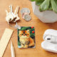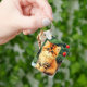 ¡Keychain con un gato de Navidad vintage! Un gatito naranja con rayas negras se sienta en la nieve. Detrás del gato hay un árbol de Navidad con adornos rojos y amarillos. También en la nieve hay un regalo rojo. ¡Un regalo perfecto para los amantes de la temporada de Navidades y gatos!