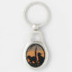 Esta imagen retrata a 2 gatos negros con ojos brillantes sobre un parche de hierba bajo una rama de un árbol muerto. El cielo en la parte de atrás es un naranja, y el color negro claro. Se agregó un borde negro. Estas cadenas de claves vienen en una variedad de estilos y tamaños.