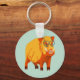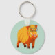 Clásica divertida de cerdo con un ilustracion de un jabalí digitalmente pintado con grandes colmillos y anteojos en forma de corazón en colores amarillo, naranja y azul brillante.