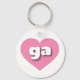 Esta cadena de claves cuenta con un vibrante corazón rosado que contiene las letras fundas negrita, blanca y redondeada, una abreviatura divertida para Georgia, el estado melocotón.