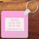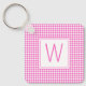 Esta linda cadena de teclas monogramada presenta un trenzado de gingham en tonos clásicos de rosa brillante y blanco. Personalice el monograma en la parte delantera con su elección de texto inicial y posterior.