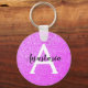 El purpurina Girly y el violeta glam deslumbra el nombre del monograma y la cadena de claves inicial. Personalice su nombre personalizado en negro y su monograma inicial en blanco. Puede cambiar el color del texto y el estilo y el tamaño del tipo de letra mediante la opción personalizar.