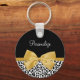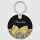 A cualquier muchacha le encantaría que su nombre se personalizara en esta cadena de llave negra y dorada, con una huella de leopardo de la moda y un diseño de cinta dorada en una forma elegante de arco. Imagen plana impresa, NO cinta real.