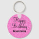 Chica personalizada y glam Happy Birthday keychain con un fondo brillante purpurina rosado caliente y una elegante escritura negra. Puede agregar fácilmente el nombre de su elección y cambiar el color y la fuente del nombre utilizando la opción personalizar.