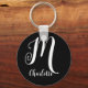 Llavero Glamoroso nombre de monograma en blanco y negro