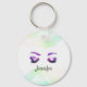 Llavero Glamorosos Ojos Púrpuros y Flores Acuarela