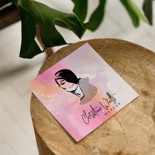 Elevate your brand with this luxurious, glam-inspired promotional product, designed for makeup artists, stylists, boutique owners, or beauty salons who appreciate elegance and style. Featuring a stunning watercolor wash in soft blush pink and light bluish tones, the card exudes beauty and sophistication. The chic illustration of a glamorous woman with long lashes and bold eye makeup adds a touch of luxury, perfectly complementing the sparkly accents and brushstroke details. With custom text, a QR code for easy access to your portfolio or booking page, and social media icons, this card makes it effortless for clients to connect. Ideal for makeup artists specializing in brows, eye makeup, mascara, and all things glamorous, as well as stylists and beauty salons looking to make a lasting impression. Sparkle, glamour, and beauty combine for a stunning impression with this high-end design.