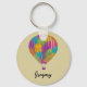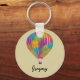 Esta cadena de teclas muestra mis ilustraciones pintados de globos de aire caliente con representaciones realistas de globos con brillantes colores arcoiris en el frente y en la parte posterior. Esta cadena de claves está lista para ser personalizada con su propio nombre u otro texto.