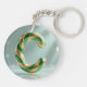 Llavero Glossy Green Gold Glitter Striped Letter C