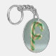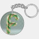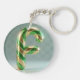 Llavero Glossy Green Gold Glitter Striped Letter F