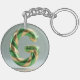 Llavero Glossy Green Gold Glitter Striped Letter G