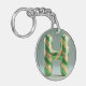 Llavero Glossy Green Gold Glitter Striped Letter H