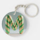Llavero Glossy Green Gold Glitter Striped Letter M