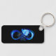Luminous infinity symbol with glowing, beautiful, lushly blooming rose made of blue flames on black background.