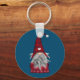 Un bonito gnomo grisáceo de invierno vestido con un traje de mimbre con copos de nieve y un corazón en la llanta de su gorra.
