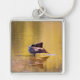 Fotografía de un ganso canadiense que se prepara en una sección poco profunda de un estanque. El equilibrio perfecto del ganso se refleja en el agua, ya que su punta de plumas grava suavemente el agua. El paisaje circundante refleja sus colores primaverales en la superficie del agua. Las ondas de tonos amarillos, verdes y marrones se dispersan por la superficie del estanque.