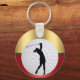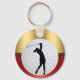 An elegant keychain for your keys that emphasizes your interest in the sport of golf. The silhouette of a female golfer has been placed over a large golf ball and set on an elegant ruby and gold background. To edit the design -- resize, reposition, replace or remove any image on the design -- select "Personalize this template" then select "Edit using Design Tool." A similar design is also available for the male gender on this Zazzle store.