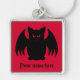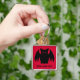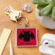 Un murciélago de vampiros negros sobre un fondo rojo feroz e impreso en una cadena de claves cuadradas premium con espacio para tu nombre. Esto se imprimirá más claramente de lo que se muestra en la imagen de previsualización comprimida.
