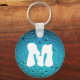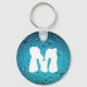 El elegante Guay Blue Water desciende la cadena de teclas Monograma. Foto de gotas de agua en color azul con su Monograma. Personaliza con tu personalizado inicial y nombre.