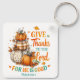 Diseño pacífico y colorido que presenta una hermosa escena otoño/otoño con calabazas decorativas apiladas y hojas otoño. El colorido texto inspirador dice: "Den gracias al Señor por ser bueno. Salmo 136:1". Este diseño está disponible en una amplia variedad de productos.