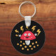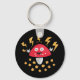 Fuerte llavero metalizado con un hongo personalizado divertido haciendo la señal a mano de los cuernos y los relámpagos y flores por todos lados. Un gran regalo para un fan del rock pop punk y una cabeza de metal con sentido del humor.