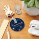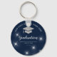 Con un moderno gorro de graduación de purpurina plateado, estrellas brillantes y guión de fondo azul marino, esta cadena de claves es un perfecto favor para una graduación superior en una clase de bachillerato o grado universitario de la celebración de 2022. Fácilmente personalizar con el año de graduación y el nombre del graduado en tipografía moderna y de moda