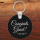 Felicitaciones a la escuela de texto de escritura clásica de personalizado blanco y negro y a la fiesta de graduación de año de clase Favors keychain. Minimalista y elegante diseño. Personalizable completo de texto blanco sobre color de fondo negro. Todos los colores son editables. Revise el resto de la colección para ver otros regalos, favores, suministros de fiesta y artículos de decoración.