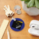 Regalo de graduación y favores de fiesta de graduación con gorra negra con tassel de oro sobre fondo azul para adultos mayores que celebran la Clase de 25.