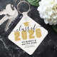 Clase de 2025 negrita Elegante Clásica de Graduación Negra y Oro Keepsake Keychain Celebra este hito especial con una elegante y personalizada cadena de claves diseñada para el graduado. Presentando "Clase de 2025" (o cualquier año) en tipografía audaz, el año y el icono de la tapa de graduación se resaltan en un oro amarillo rico para un sorprendente contraste, mientras que el resto del texto sigue siendo negro clásico. En la parte inferior, hay un espacio de personalizable para el nombre de la escuela de graduados, lo que lo convierte en un conservador único y significativo. Un sencillo marco negro bordea los bordes para un aspecto pulido e intemporal. Perfecto como un regalo reflexivo o un recuerdo personal, este llavero es una gran manera de conmemorar sus logros. Personalizable completo, los colores se pueden ajustar para que coincidan con los colores de la escuela o con los tonos favoritos del graduado, lo que lo convierte en un accesorio especial y memorable para su gran día.
