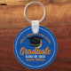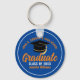 Este moderno naranja y personalizado azul de la cadena principal de graduados presenta su nombre de instituto o universidad para la clase de 2023. Personalizar con tu año de graduación bajo el guión manuscrito de la moda y el tapón negro para un gran regalo personalizado de la cadena de claves de graduación.