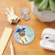 Felicita a tu graduado favorito con un regalo que incluye a un adorable graduado de Soft Coated Wheaten Terrier vestido con un mortero en medio de una ráfaga de confetti.