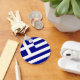 Bandera de Grecia. La bandera de Grecia (popularmente conocida como el "azul celeste-blanco" o el "azul-blanco" y en griego: "Γ α λ α ό λ~ " o "Burn Burn"), reconocida oficialmente por Grecia como uno de sus símbolos nacionales, se basa en nueve franjas horizontales iguales de azul que se alternan con blanco. Hay un cantón azul en la esquina superior del pabellón con una cruz blanca; la cruz simboliza el Cristianismo Ortodoxo Oriental, la religión establecida del pueblo griego de Grecia y Chipre. Según la tradición popular, las nueve franjas representan las nueve sílabas de la frase "Ε λ ε υ θ ρ・ Bursni Bursni" ("Libertad o Muerte"), las cinco franjas azules de los sílabas "Burn" y las cuatro franjas blancas "Burn Bursni". También se dice que las nueve franjas representan las letras de la palabra "libertad" (griego: Ε λ ε υ θ ε ρ .) También hay una teoría diferente, que las nueve franjas simbolizan las nueve musas, las diosas del arte y la civilización.