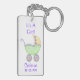 Personalice este llavero conmemorativo para dar la bienvenida al chica o al niño del recién nacido. Se personaliza con el nombre y la fecha de nacimiento del bebé. Este llavero cuenta con un carrito de bebé verde y amarillo con las palabras de personalizable "¡Es un Chica!" y el nombre y fecha de nacimiento de un bebé para una apariencia moderna y limpia sobre un fondo blanco. El mismo diseño está en el otro lado, pero podría cambiarse a otra información. El buggy se acentúa con colores malva lavanda. Esta cadena de claves coordina con otros productos para bebés en esta tienda para grandes regalos. El buggy buggy buggy es un arte original elegante, bonito y llamativo de Phyllis Dobbs. Personalizable completo.