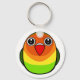 A cartoon drawing of a wild type green fischer lovebird (agapornis fischeri). This keychain is a cute collection for every lovebird lover!