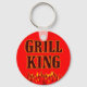 Grill King dijo chistoso bbq en un tipo de letra flameante occidental para cocineros y cocineros cocineros. Con arte gráfico de llamas rojas y naranjas en la parte inferior del diseño. Otro original de MomsRetro.