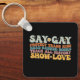 Llavero Groovy LGBT dice Gay Protect Trans Kids Leer libro