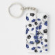 Esta divertida cadena de claves temática del fútbol presenta la imagen de un grupo de balones de fútbol de tamaño variado azules, negros y blancos y puede ser personalizada con el nombre del atleta en el frente y el número de camiseta o monograma en la parte posterior - de katz_d_zynes