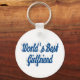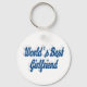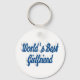 Cadena de claves con la mejor novia del mundo en texto azul marino 3D. Las cadenas de clave redonda y cuadrada están disponibles en varios tamaños.