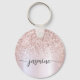 Llavero personalizado con monograma de brillo metálico rosa dorado con nombre en letra script glamour femenino. Estos diseños presentan su primer nombre en una hermosa tipografía de letra manuscrita con florituras en hoja de aluminio metálico rosa dorado con borde de brillo glamuroso. Estos son fáciles de personalizar. Gran regalo elegante y femenino para inauguración de casa, también para cumpleaños, día de la madre, boda, despedida de soltera, fiesta de cumpleaños de 16 años, baby shower, fiesta de graduación y es para la chica que ama cosas únicas y elegantes con brillo.