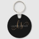 Modern Black Gold Feminine Script Monogrammed Keychain. Personalice fácilmente este elegante y moderno llavero con su monograma y nombre personalizado.