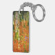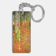 Keychain con la pintura de Gustav Klimt Farmhouse con Birch Trees (1903). Un paisaje otoñal de hojas naranjas en un bosque de abedules con hermosas flores azules. Un regalo maravilloso para los amantes del arte Art Nouveau y austriaco.