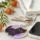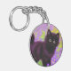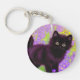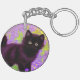 Keychain con un gatito negro de Gustav Klimt! Esta belleza de ojos anchos posa en un campo verde de flores moradas. Un regalo para los amantes del gato y del arte austriaco.