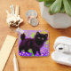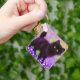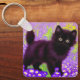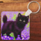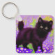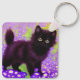 Keychain con un gatito negro de Gustav Klimt! Esta belleza de ojos anchos posa en un campo verde de flores moradas. Un regalo para los amantes del gato y del arte austriaco.