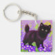 Keychain con un gatito negro de Gustav Klimt! Esta belleza de ojos anchos posa en un campo verde de flores moradas. Un regalo para los amantes del gato y del arte austriaco.