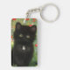¡Keychain con un gatito de Gustav Klimt! Este gatito negro lleva un collar de plata y se sienta en un campo de flores rojas, azules, blancas y amarillas. ¡Un regalo maravilloso para los amantes del gato y del arte austriaco!