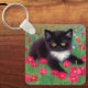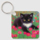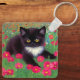 Keychain con un gato Gustav Klimt tuxedo! Este bonito gatito blanco y negro se encuentra en un campo de flores rojas, azules, blancas y naranjas. ¡Un regalo increíble para los amantes del gato y del arte austriaco!