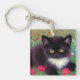 Keychain con un gato Gustav Klimt tuxedo! Este bonito gatito blanco y negro se encuentra en un campo de flores rojas, azules, blancas y naranjas. ¡Un regalo increíble para los amantes del gato y del arte austriaco!