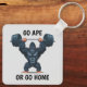 Lleva tu motivación dondequiera que vayas con este llavero. Con un gorila musculoso levantando una barbacoa con el lema "Vete al Ape o vete a casa". Perfecto para llaves, bolsos o como regalo único para los amantes del fitness.